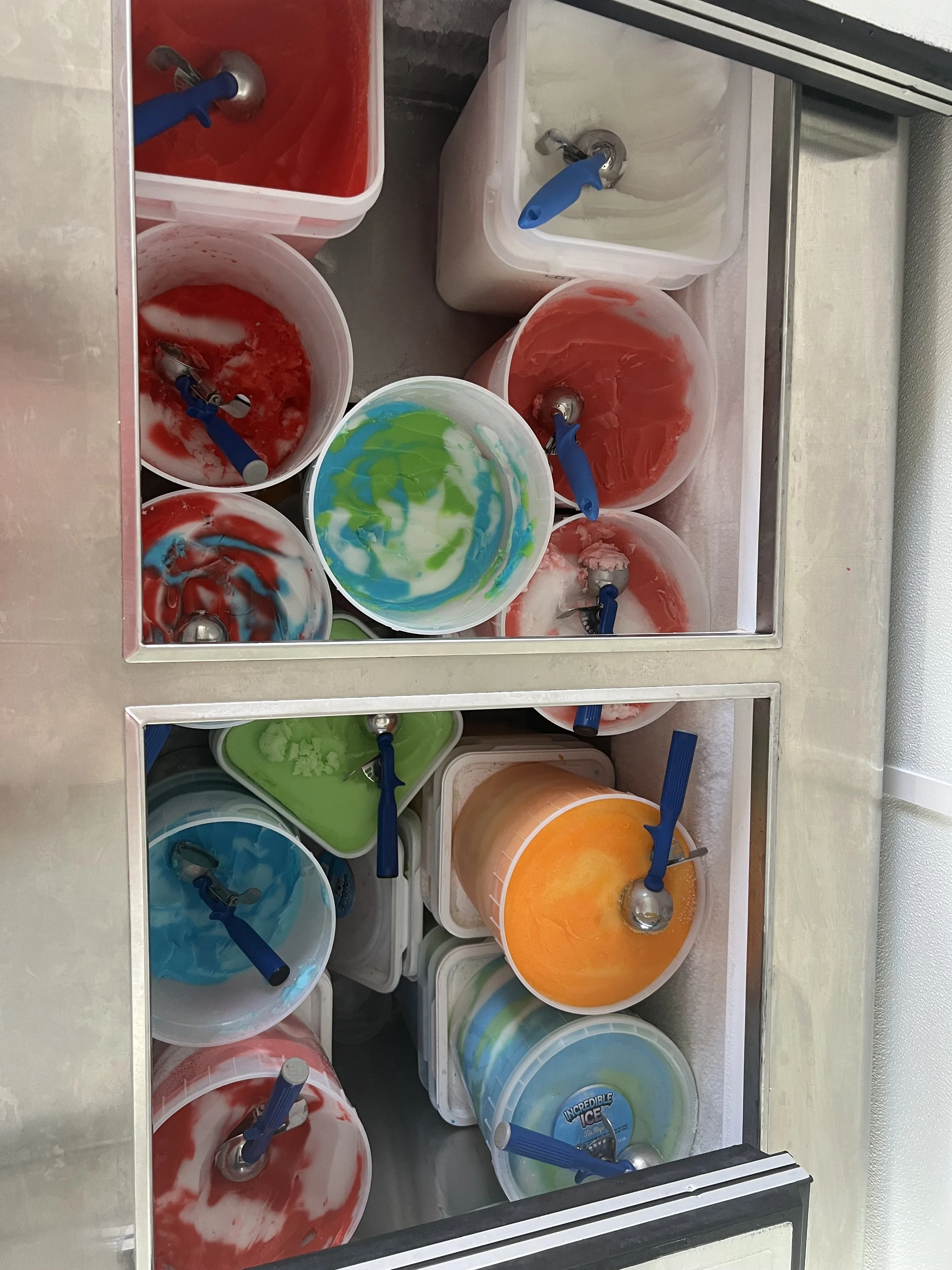 BG’s Italian Ice is a fat & cholesterol free non dairy water based product is made in 16 delicious flavors along with some of our favorites such as Rainbow, Mango, Cherry and Blueberry. Unlike "snow cones" and "shaved ice" which traditionally has syrup poured over ice, BG’s Italian Ice is made with time honored recipes and blended in a special freeze machine to a smooth "creamy-like" consistency, which makes our Italian ice treat good until the last scoop.